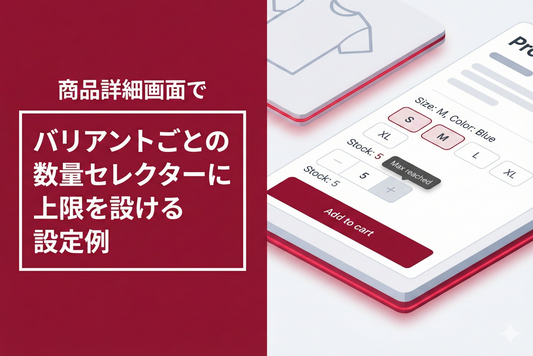 - 2025/12/22 Shopifyのテーマ「Rise/Dawn」の商品詳細画面でバリアントごとの数量セレクターに上限を設ける設定例