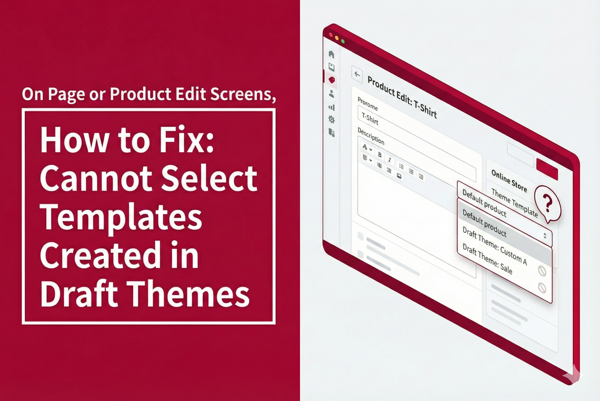Templates that are not in the live theme cannot be selected from the product, page, or blog admin screens, so the draft theme preview screen cannot be displayed.
