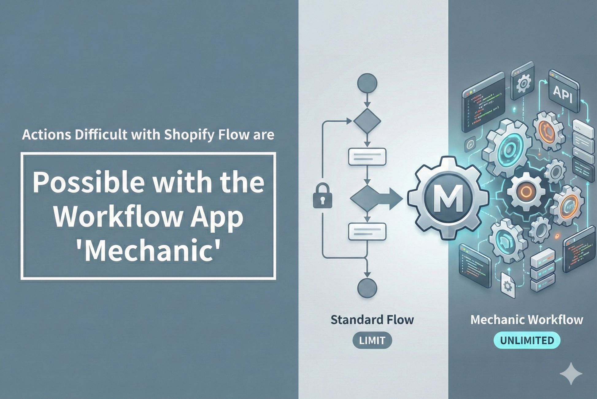 Mechanic is a workflow app that allows you to perform actions that are difficult to do with Shopify's Flow