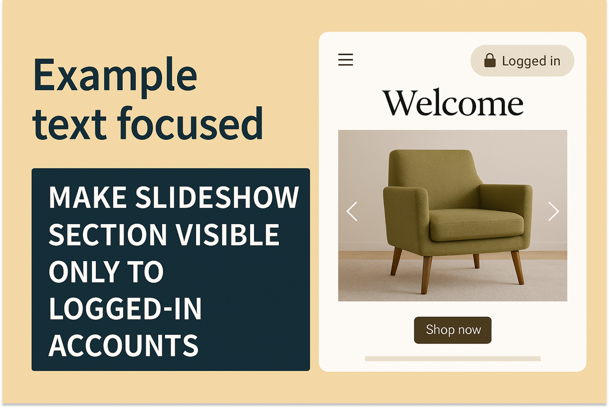 Example of setting up a block that can only be displayed to logged-in accounts in the slideshow section of the Shopify themes "Dawn" and "Rise"