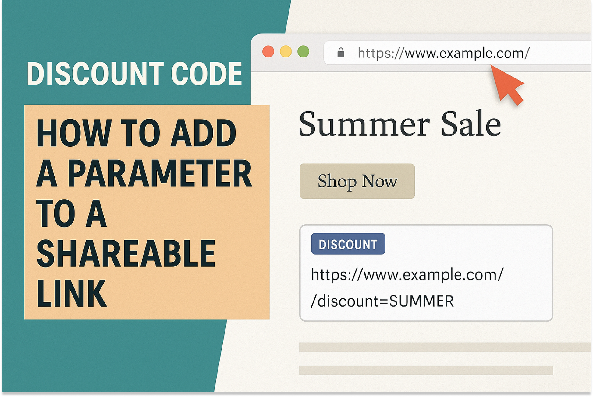Shopify's discount codes (coupons) have a convenient "shareable link" that is automatically applied by clicking on a URL. There are times when you may want to add parameters to this link. Here is an example of how to set it up.