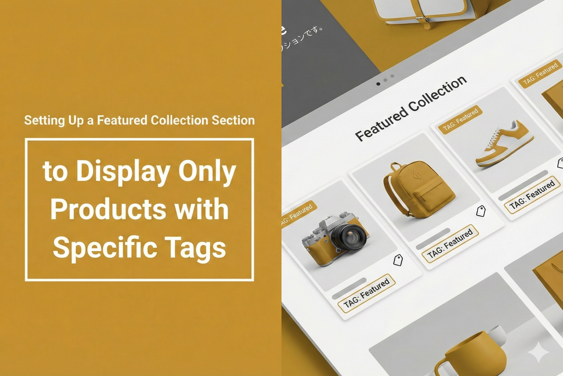 This is an example of how to set up Shopify's featured collection section so that it only displays products with specified tags. You can simply specify another collection narrowed down by the specified tag, but this is useful when you want to temporarily display featured products separately from the product list on the specified collection page.