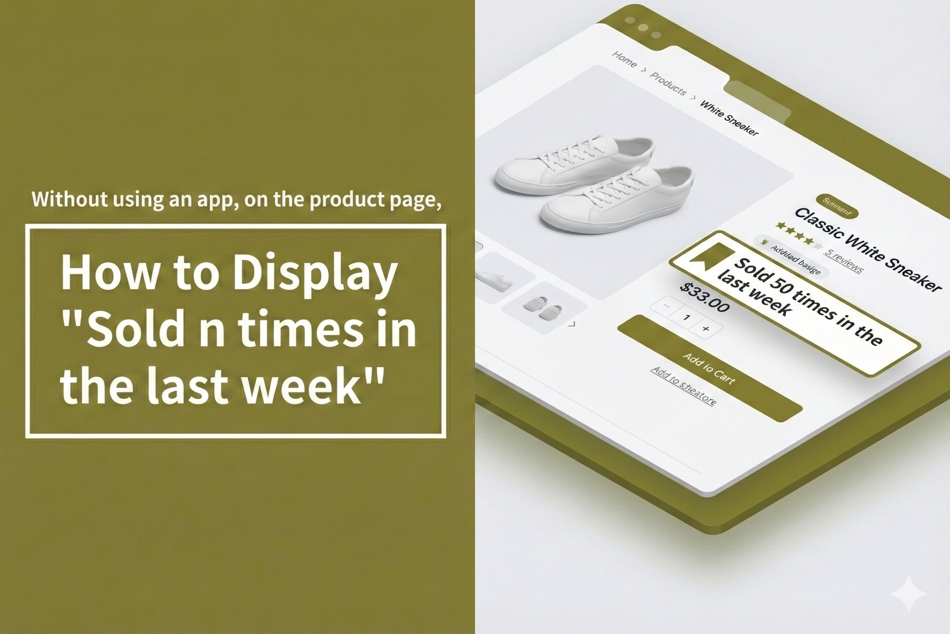 Example of setting up Shopify to display "This product has been purchased n times in one week" on the product detail page without using an app