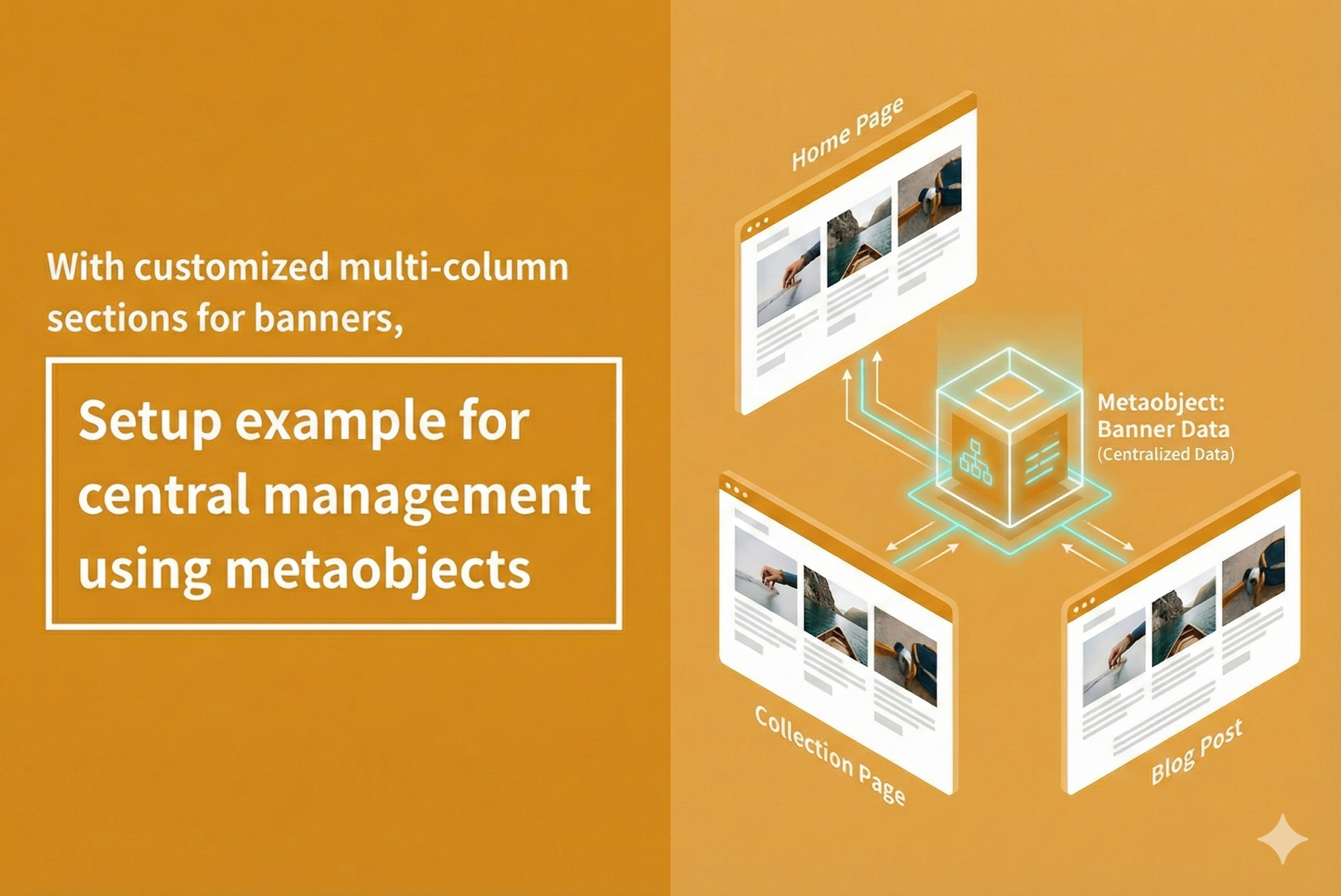 I previously posted an example of customizing the multi-column section of the Shopify theme "Dawn" to use as a banner display space, but this can also be centrally managed using meta objects. Here is an example of that configuration.
