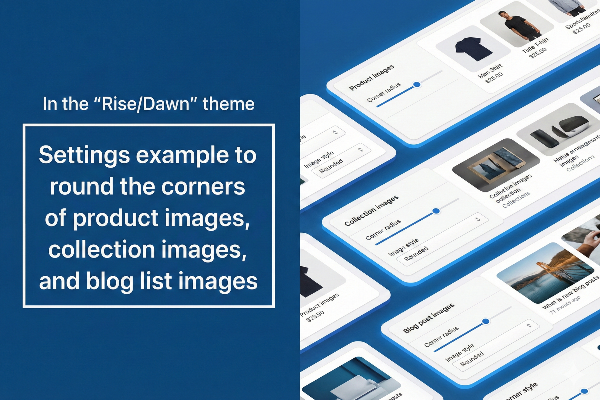 Example of setting the rounded corners of product images, collection images, and blog list images in the theme "Rise/Dawn"