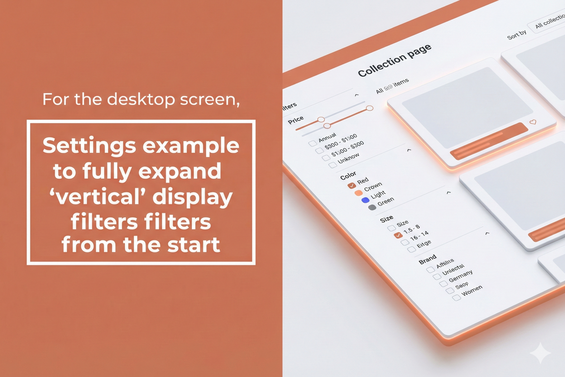 An example of how to set up the desktop "vertical" display filters on the collection page of the theme "Rise/Dawn" to be fully expanded from the start.