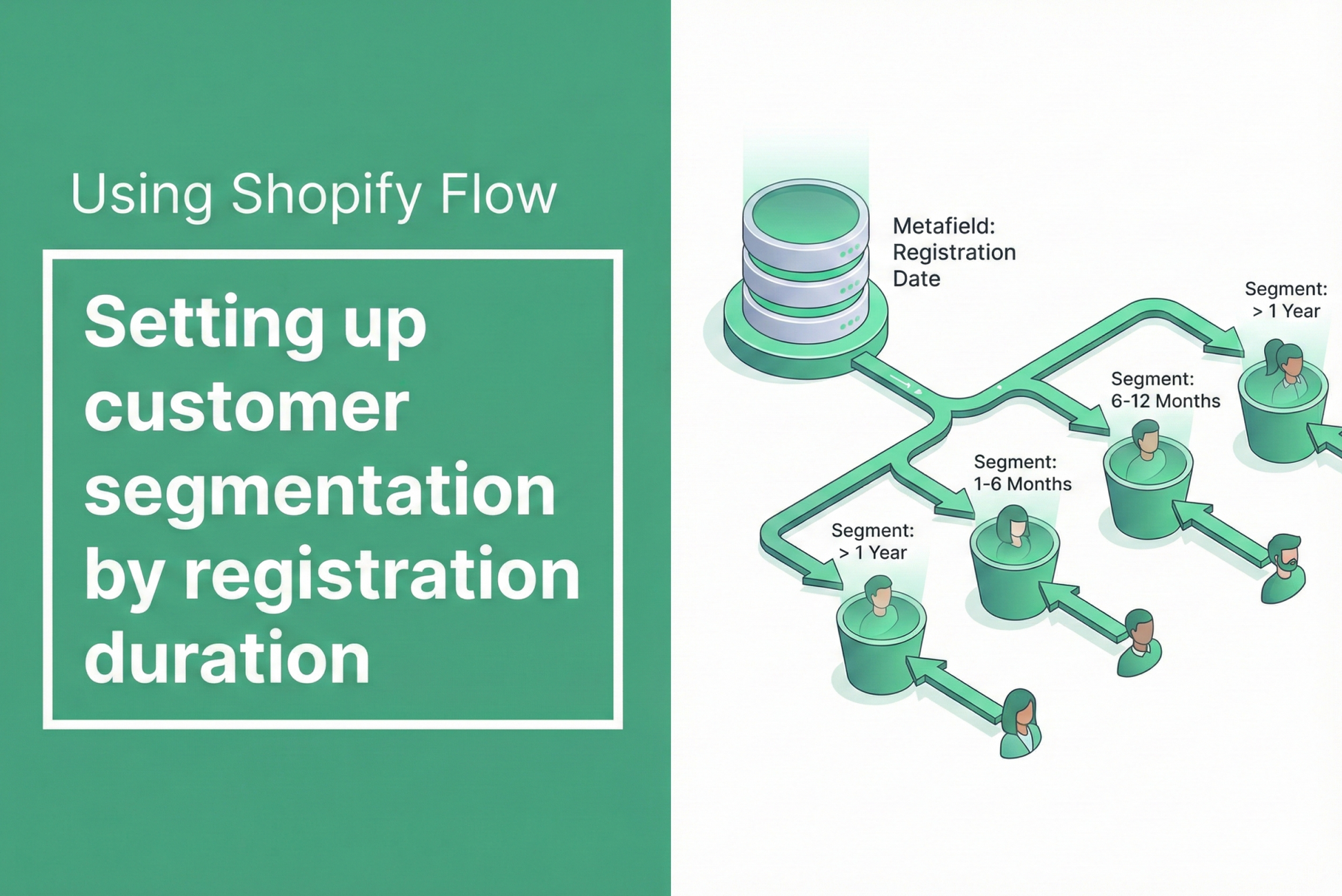 ◆Specific implementation steps ①Create a customer metafield ・Create a new metafield for customers from the admin screen ・Set "Account creation date" as the date type ②Create a Flow ・Trigger: When a customer account is created ・Action: Automatically set the creation date in the metafield ③Create customer segments ・Automatically determine by comparing with metafield values ・Set conditions in MECE for each segment, such as 1 year or 2 years