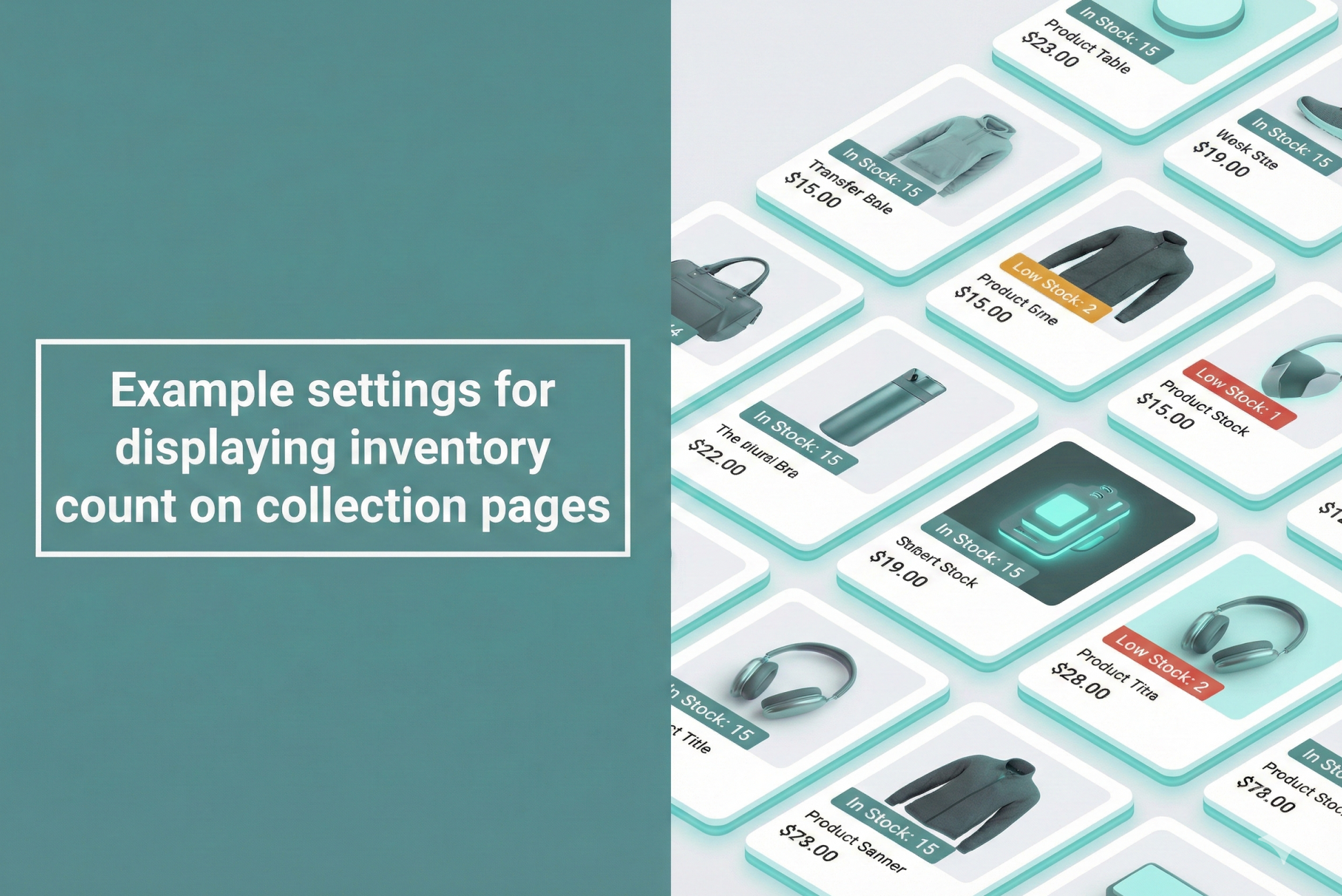 Example of settings to display inventory quantity (total inventory quantity for products with variants) on the collection page of the Shopify theme "Rise/Dawn"