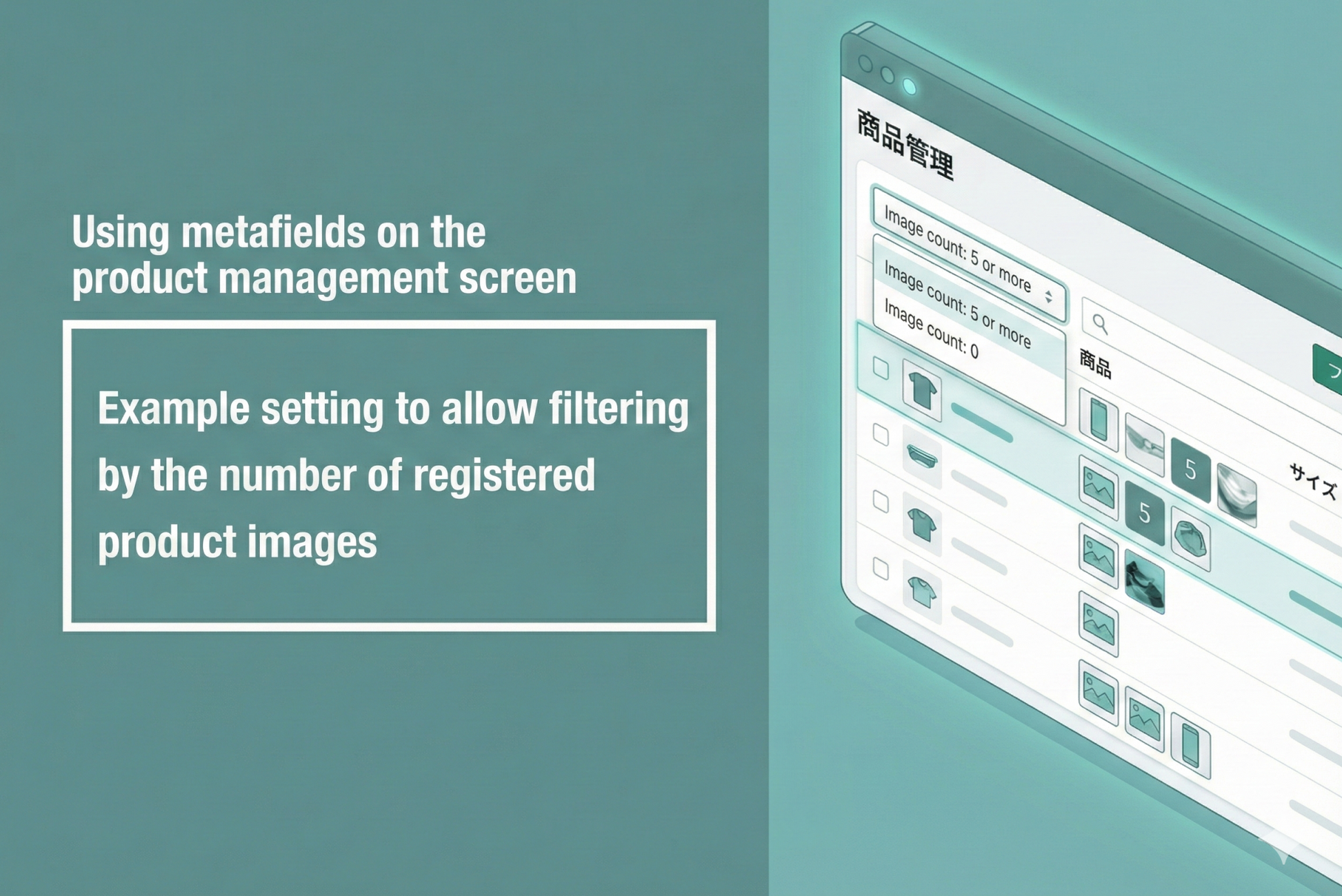 Example of setting up a metafield to allow filtering by the number of registered product images on the product management screen