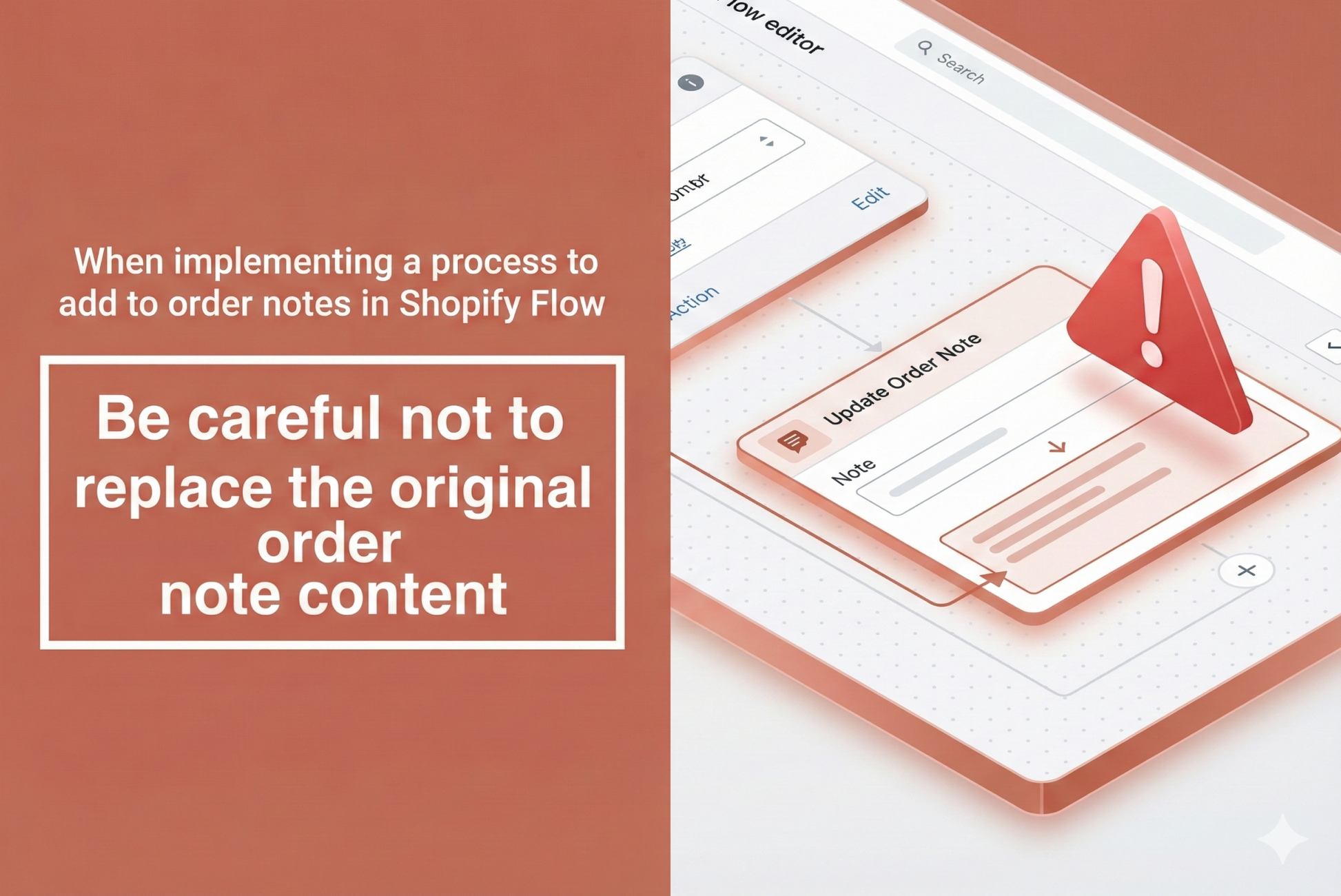 When implementing a process to add to order notes in Shopify Flow, be careful not to replace the contents of the original order notes.