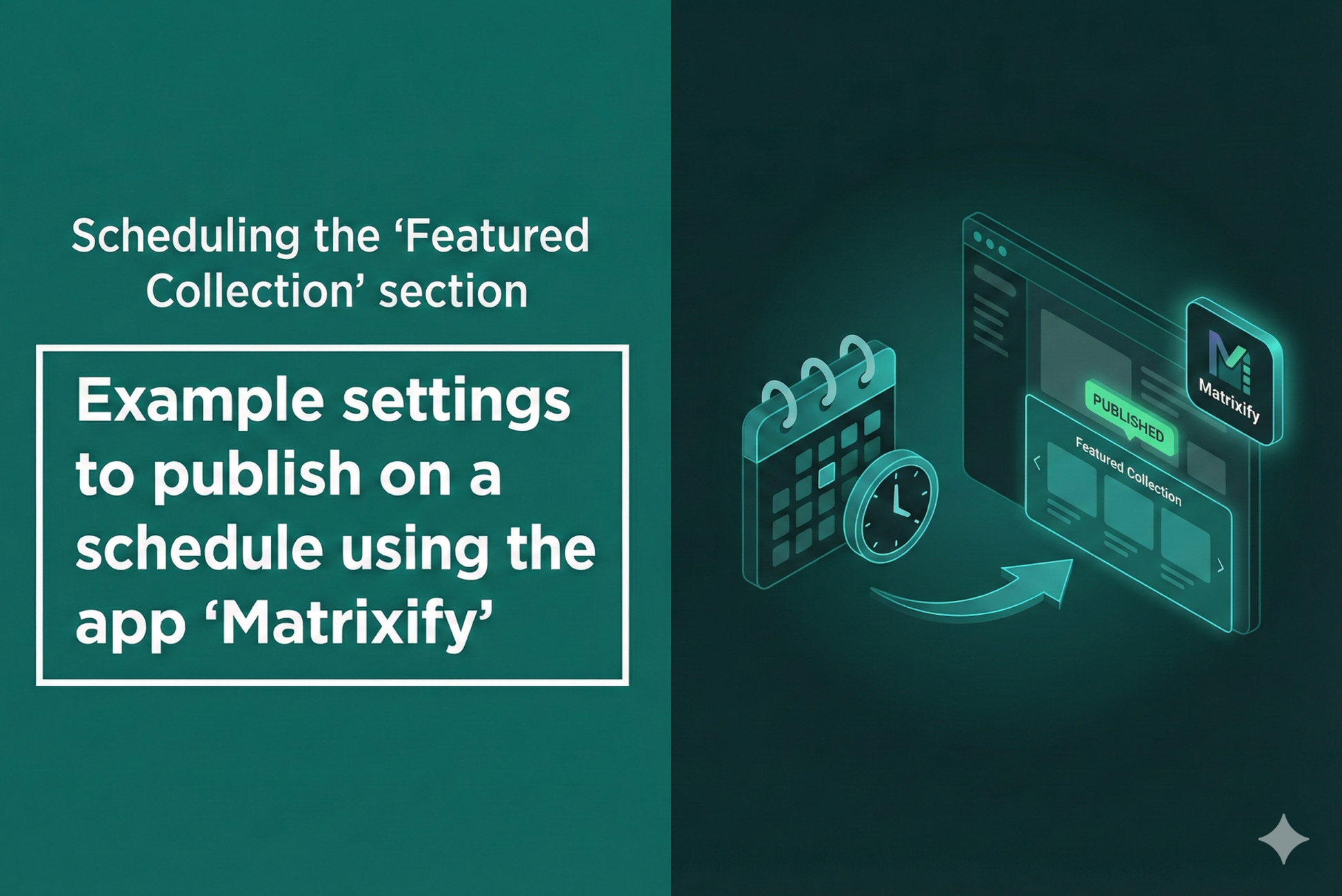 Example of setting up the "Featured Collection" section of the "Rise/Dawn" theme to publish a schedule using the app "Matrixify"