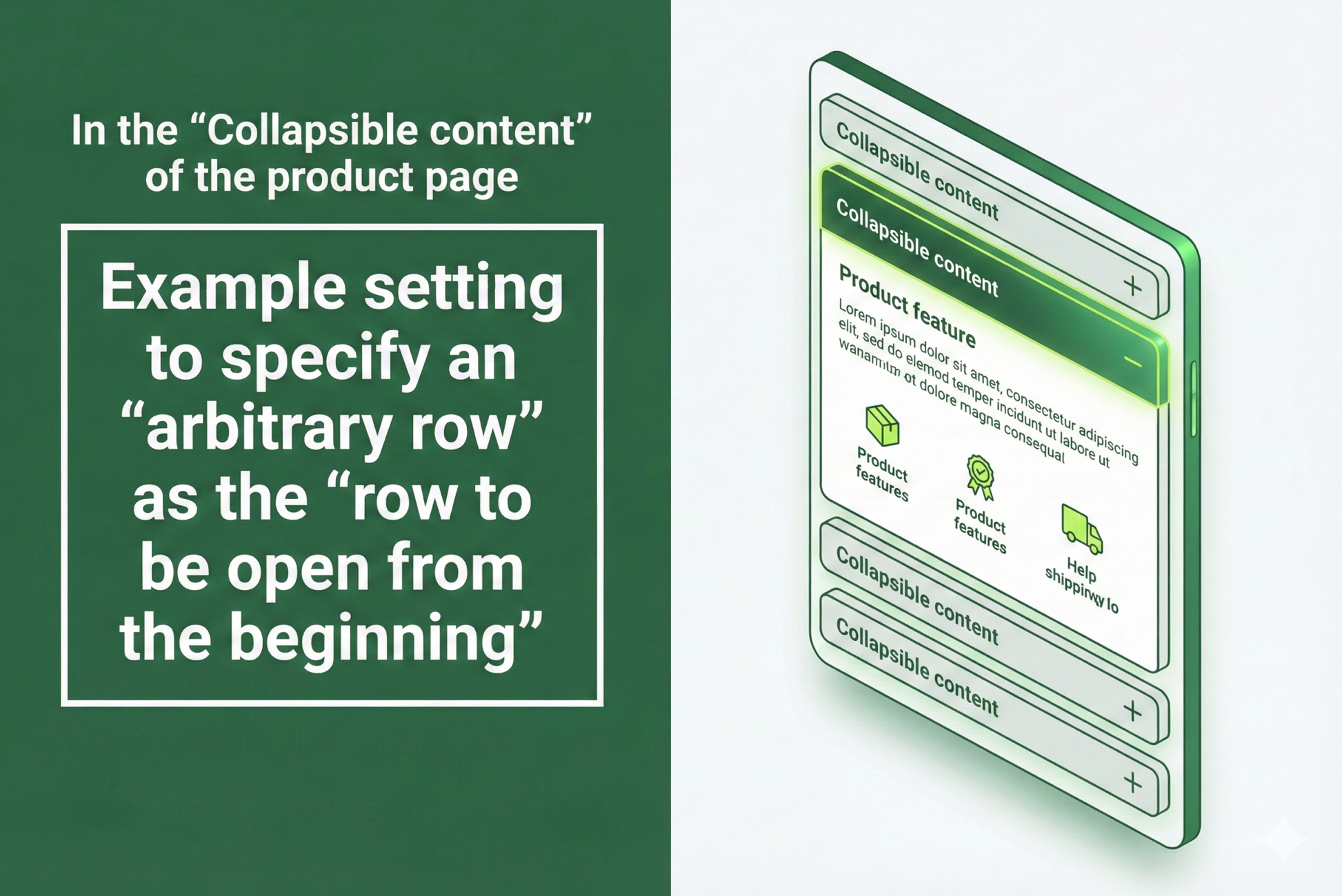 This is a method that allows you to freely specify the row you want to open from the beginning using the "Collapsed Content" that can be set on product pages in the Rise/Dawn theme.