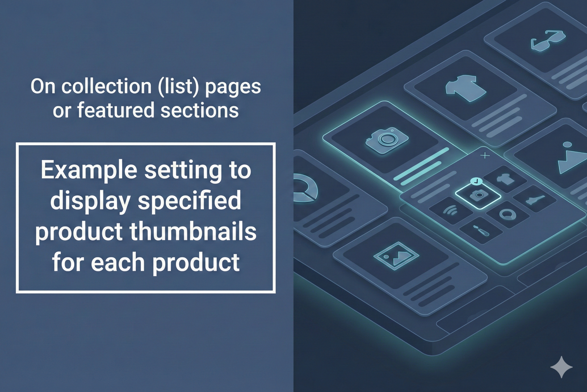 Example of settings to display specified product thumbnails for each product on collection pages and featured sections of the theme "Rise/Dawn"