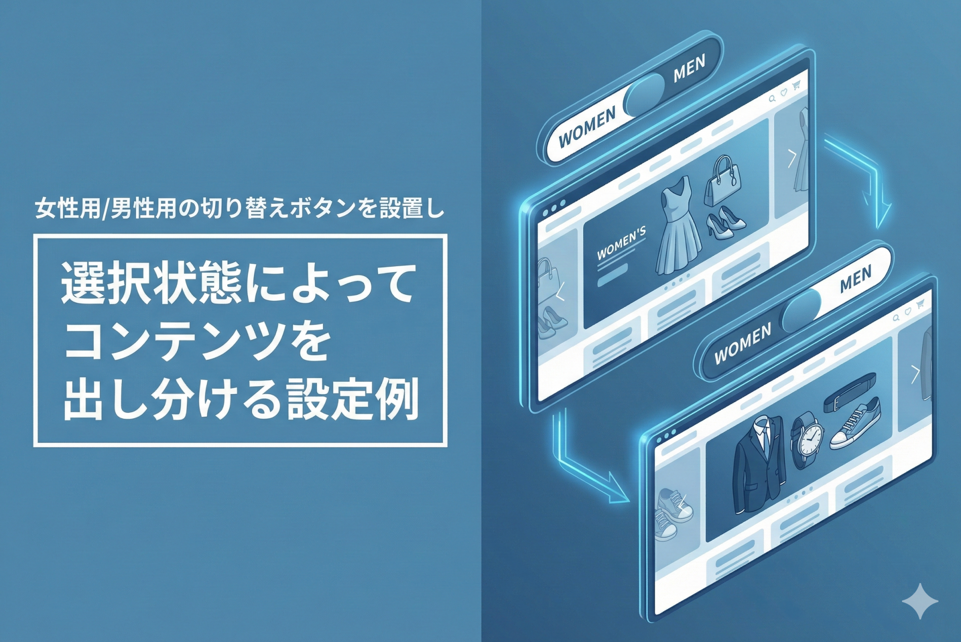 Shopifyのテーマ「Rise/Dawn」のトップページで女性用/男性用の切り替えボタンを設置し、選択状態によってコンテンツを出し分ける設定例