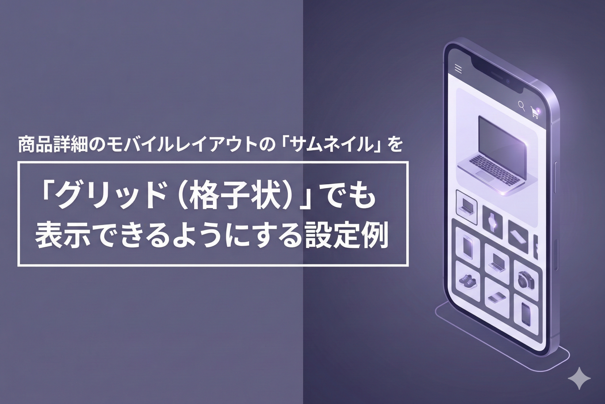 テーマ「Dawn/Rise」商品詳細のモバイルレイアウトの「サムネイル」を「カルーセル」以外に「グリッド(格子状)」でも表示できるようにする設定例