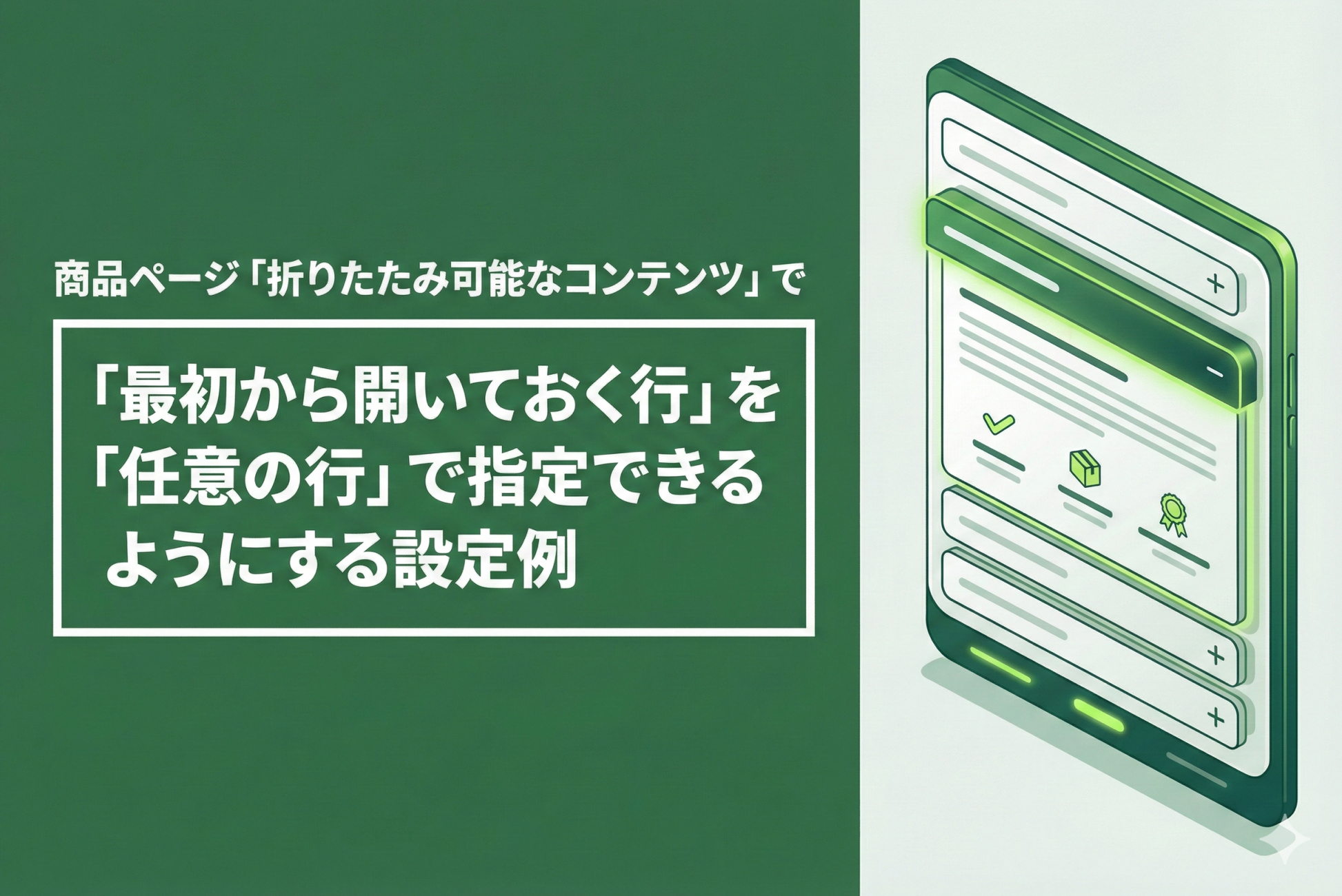 Rise/Dawnテーマお商品ページに設定できる「折りたたみコンテンツ」で最初から開いておきたい行を自由に指定できるようにする方法です。