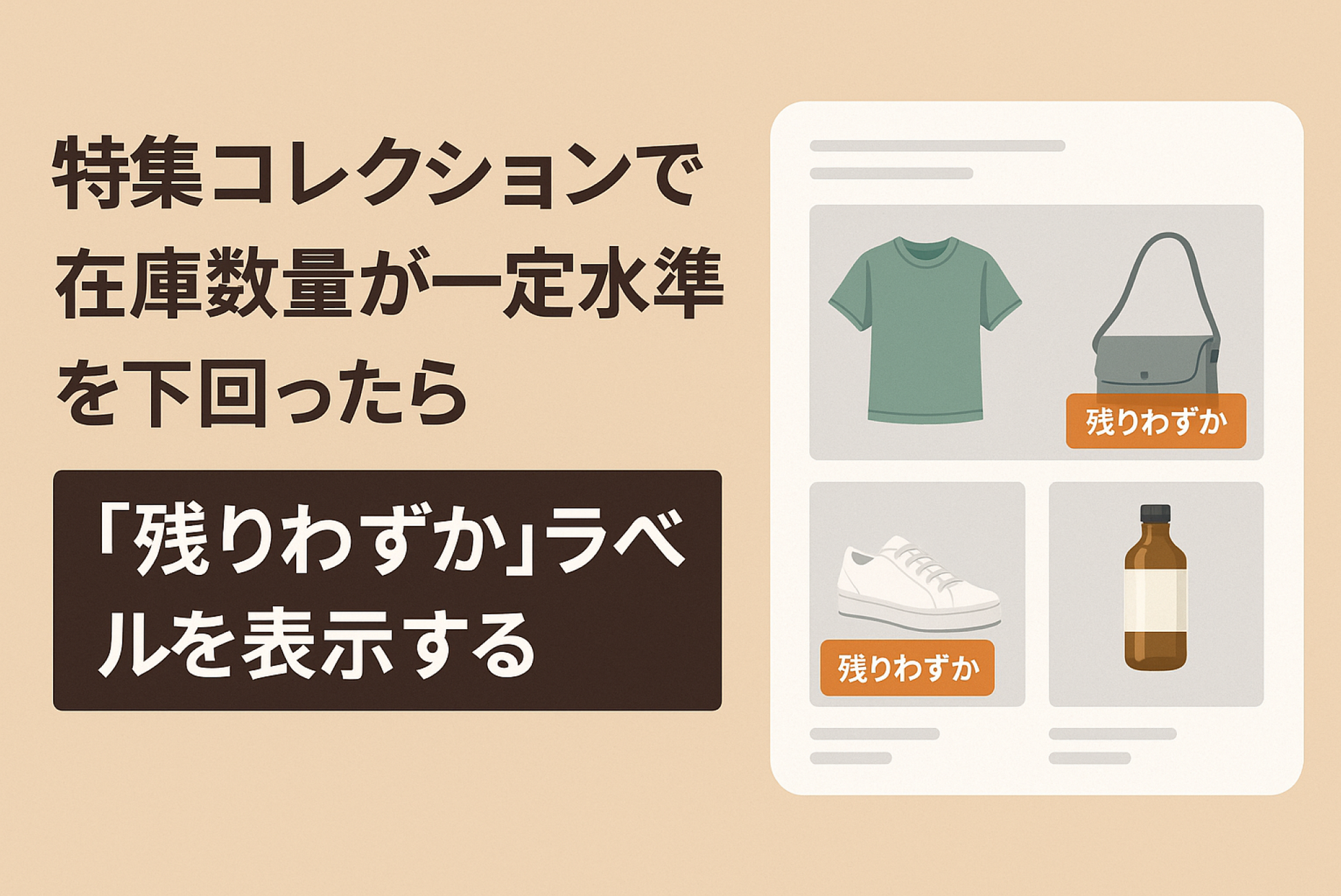 Shopifyのテーマ「Dawn」の特集コレクションセクションで在庫数量が一定水準を下回ったら「残りわずか」ラベルを表示する設定例